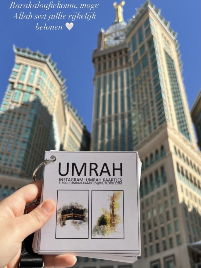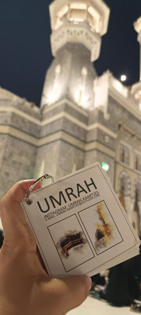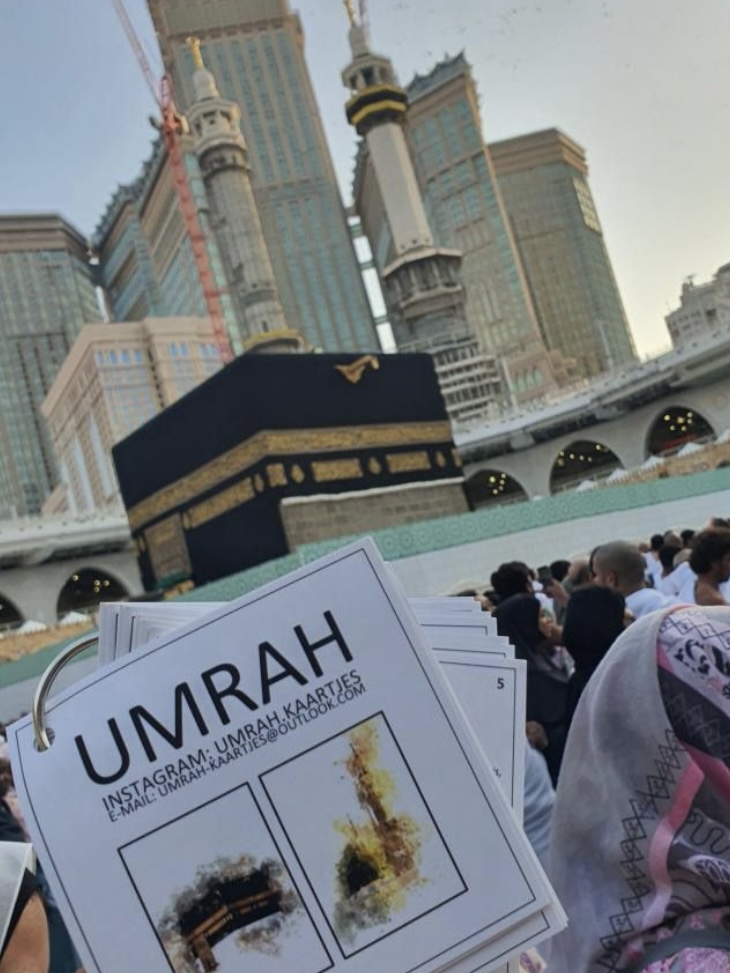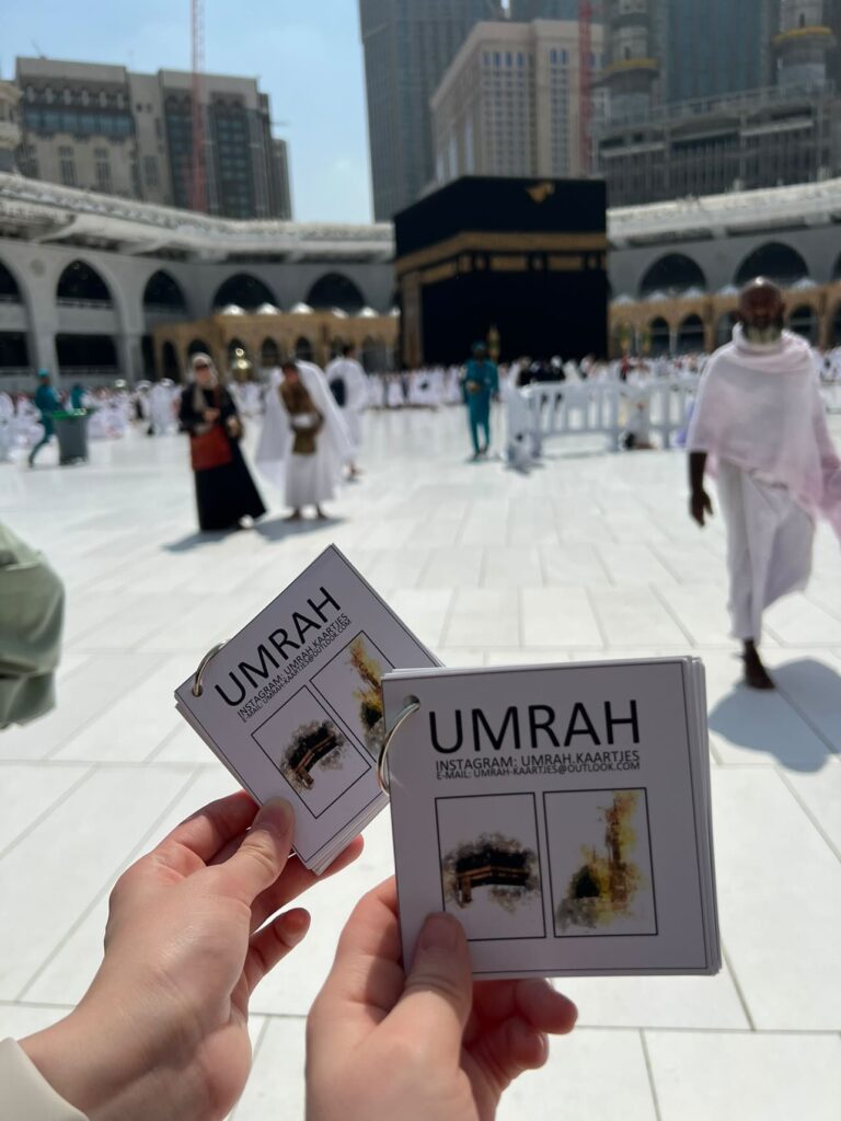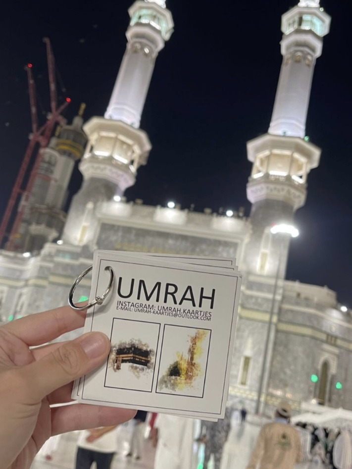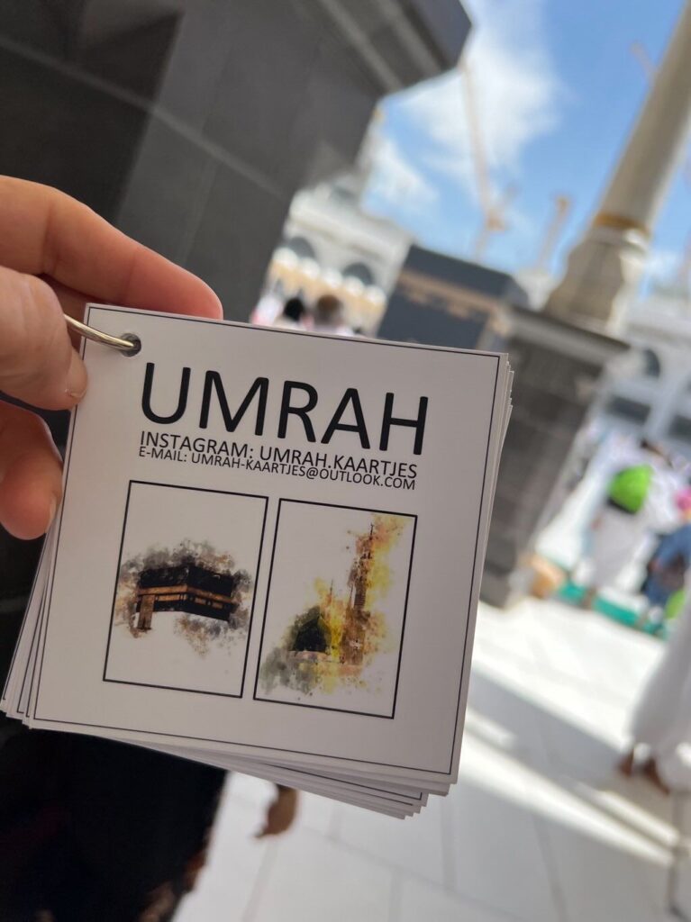Voor onze eerste umrah in 2021 maakten wij kaartjes met de belangrijkste smeekbeden die gezegd dienen te worden tijdens de umrah-rituelen. Niet veel later gaven we een vriendin de in elkaar geknutselde kaartjes mee op haar umrah. Vol lof sprak ze over de kaartjes en plantte daar het zaadje van de umrah.kaartjes. We lieten de kaartjes controleren door verschillende docenten om er zeker van te zijn dat we de juiste informatie deelden.